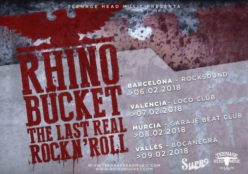 Rhino Bucket publicaron nuevo disco “The Last Real Rock n’ Roll” el pasado 2017 y nos visitan para presentarlo. Álbum producido por Eddie Spaghetti, líder de Supersuckers, décima referencia de esta infravalorada banda californiana de rock duro y de millón y medio de vatios como los AC/DC desde los últimos años 80 y primeros 90 un éxito que iba gradualmente en ascenso con su debut en 1990 y su segundo “Get Used to It” en 1992, claramente influenciados por esos potentes power chords, Boogie Rock, coros agresivos y una tendencia a primar la energía y la electricidad por encima de todo.