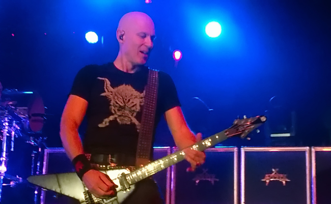 Pero si el concierto fue una gran celebración lo fue en parte porque a todos esos pequeños-grandes detalles se le unió una actitud escénica sobresaliente de la banda en escena, recreando una vez más todos esos clichés clásicos de gestos, poses, interacción entre ellos y con el público que resultan imprescindibles en cualquier concierto de estas características. Por supuesto la palma en ese sentido se la lleva un animal escénico como es Wolf Hommann líder absoluto que además de ser un gran guitarrista, es capaz de levantar una sala con su escenografía durante la actuación. No le va a la zaga Peter Baltes que le acompaña en sus movimientos en numerosos momentos del show. Y también se transmite el buen rollo que hay dentro de la banda, con bromas entre ellos buscadas y casuales entre Hoffmann, Baltes y Tornillo, un cantante que muestra un buen estado vocal y una simpatía continua con el público. Quizá ha sido la gran gira de heavy metal del año y una de las mejores en general que se hayan visto por España este 2014. Por cierto los que se han quedado sin verlos (y conozco a unos cuantos de ellos que se están tirando de los pelos), que no se apuren. Ya se ha confirmado su presencia para el año que viene en el Rock Fest de Barcelona. Y por lo visto en esta gira si las cosas siguen igual no dudo que serán los grandes triunfadores del festival.