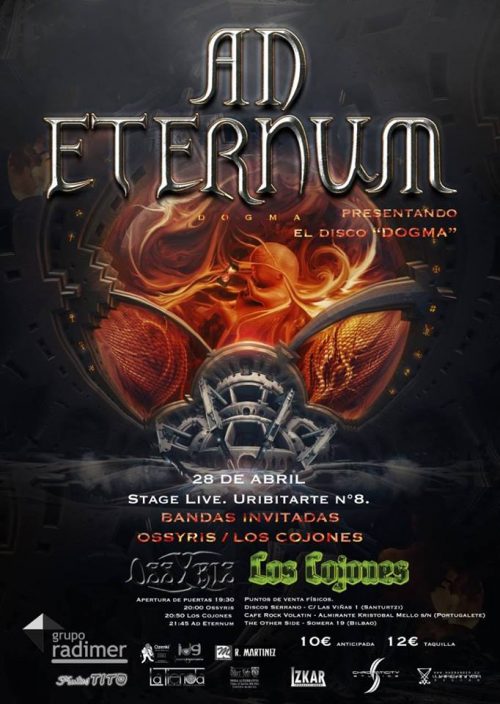 La presentación oficial del álbum, será en la bilbaína Stage Live, este sábado  28 de Abril y contara con la participación de Los Cojones y Ossyris, un par de formaciones que dejaran el camino barrido para que Ad Eternum salgan triunfantes de su gran noche.