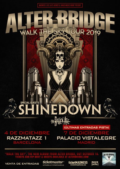 Informamos que el concierto de Alter Bridge + Shinedown + The Raven Age en Barcelona pasa de Sant Jordi Club a la Razzmatazz 1.