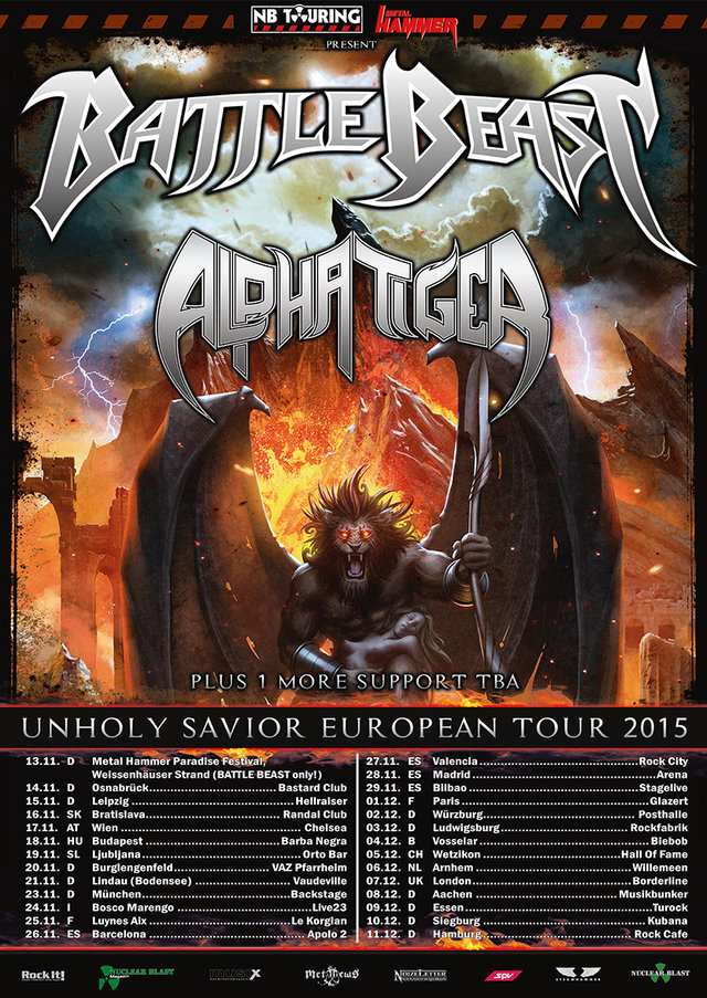 BATTLE BEAST pronto despuntaron con sus rompedores riffs, gritos estremecedores y potentes coros marca de la casa.  Su tercer disco, “Unholy Savior” (Nuclear Blast, 2015) nos trae unos Battle Beast más potentes y agresivos que nunca.