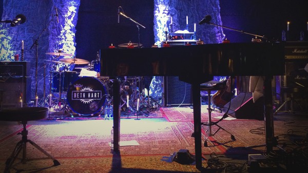 Sin teloneros ni mayores presentaciones, la banda apareció sobre el escenario a eso de las ocho. Esperaban ahí arriba las guitarras, el bajo y la batería, clásicos instrumentos del conjunto de rock. En medio, un piano. Y sobre éste, unas velas de pega: quizá lo único falso en todo el concierto. Arrancó la noche con una versión guitarrizada de «Might As Well Smile», con la banda todavía un poco fría y sin el apoyo de vientos y teclados que tan bien arropan el tema en estudio. El sonido tardó también una o dos canciones en ajustarse a la perfección vocal de Beth pero, una vez que lo hizo, no hubo forma de quitar el ojo del escenario. Cuando Beth Hart se levanta de la banqueta y se acerca al borde del escenario, se convierte en una frontwoman cuyo magnetismo obliga a seguirla con los cinco sentidos. Cuando vuelve a sentarse frente al piano, evoca a esas grandes del jazz cuya voz hace olvidar el resto de instrumentos. Sin necesidad de hacer grandes contorsiones vocales, la variedad, la gracia y el poderío que desprende Hart desde sus cuerdas vocales son dignas de admirar en riguroso silencio. Fuerte, suave, más cerca o más lejos del micrófono, siempre ese color inconfundible. Incluso los silencios mantenían la intensidad de la interpretación. Podrían haber sido doce canciones a capella y las sensaciones no habrían sido muy diferentes.