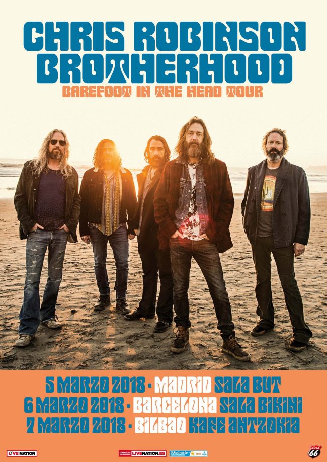 Chris Robinson Brotherhood, la banda de blues americana del lider y vocalista de The Black Crowes, confirma tres conciertos dentro de su tour ‘Barefoot In The Head Tour’ el próximo mes de marzo: el 05 en la Sala But de Madrid, el 06 en la Sala Bikini de Barcelona y el 07 en el Kafe Antzokia de Bilbao.