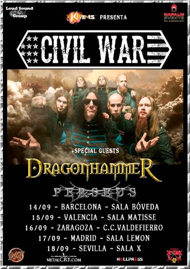 Civil War formada por tres ex Sabaton en sus filas, Rikard Sundén, Daniel Mullback y Daniel Mÿhr y uno de los mejores vocalistas del Heavy Metal de la actualidad, el cantante de Astral Doors, Nils Patrik Johansson. Civil War vendrán a presentar los nuevos temas, el sucesor de «Gods And Generals», su último álbum publicado hasta la fecha. En la actualidad Civil War está en el estudio grabando su tercer álbum de estudio.