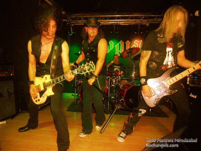 A la hora convenida y sin teloneros dieron comienzo a un setlist que, evidentemente, presentaba su álbum homónimo, a excepción de la balada Forever, y que aderezaron con tres versiones del Born to Be Wild, el Inmigrant Song y el American Woman. Mucho más brillantes en los temas propios, como no podía ser de otra forma, demostraron poseer un buen cantante con una voz de esas rockeras que tanto nos gustan, con estilo y con matices, y unos músicos excelentes, con una base rítmica brutal que supone la locomotora de este tren diabólico, que tiene como maquinista a Jörg Michael, un auténtico animal (lo siento Jörg, pero te lo dije hasta en persona) y copiloto a Michael un teutón guaperas y simpático que se mueve en el escenario como pez en el agua. Las guitarras de Laki, potentes y detallistas, ruidosas y preciosistas, completan una banda distinta, con clase, con elegancia, pero con pegada.