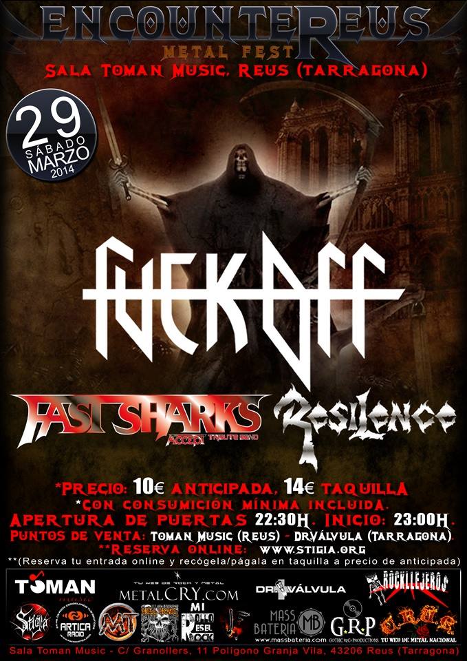 Unos FUCK OFF que nos dejaron dos fantásticos discos, que fueron todo un icono en el Thrash Metal nacional, como «Another Sacrifice» del año 1988 y «Hell On Earth» de 1990. Poco después, la banda se disolvió y se han reformado 20 años después, con dos miembros originales y dos nuevos miembros de «sangre joven» que dan muchísima energía y dinamismo a esta grandiosa banda.