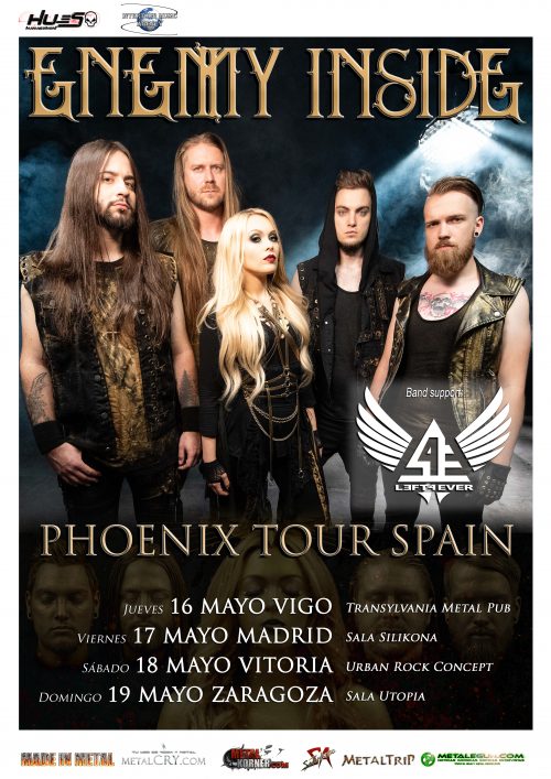 «Phoenix Tour Spain» será la oportunidad de ver por primera vez a la banda en España, Enemy Inside están llamados a ser una gran banda en Europa y Estados Unidos, no dejes pasar la ocasión de verlos en: