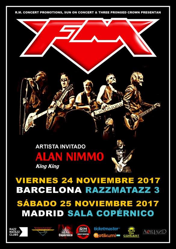 Desde R.M. Concert Promotions os comunicamos unos cambios de última hora en la gira que va a realizar FM en nuestro país los días 24 y 25 de este mes, en un principio, ROBERT HART iba a ser el encargado de abrir los conciertos como artista invitado especial en Barcelona y Madrid, sin embargo, y muy a nuestro pesar, lamentamos comunicaros que por razones ajenas a la organización no podrá estar en dichos conciertos, incorporándose finalmente Alan Nimmo, cantante y guitarra de King King para las dos fechas.