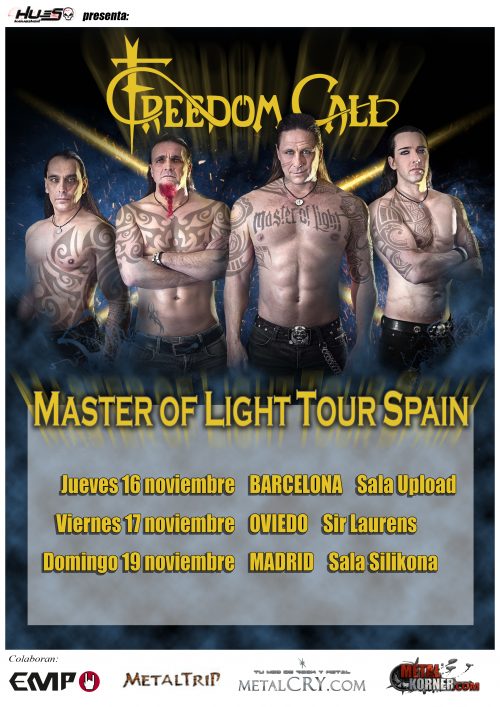 Los alemanes Freedom Call están en la escena «Power metal» desde 1998, y nos han regalado hasta ahora 13 trabajos discográficos (entre Lps,Eps y directos). Fue en 2016 cuando publicaron su última obra «Master Of Light», que les está llevando a a actuar en muchos festivales, y que ahora regresan a los clubs para seguir presentando esta obra.