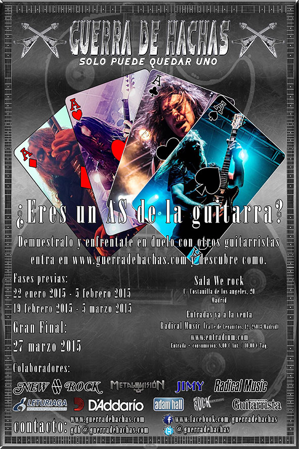 Guerra de Hachas es un concurso novedoso, dinámico, ideado para dar con el guitarra más completo de España. Esta primera edición tendrá lugar a cabo en Madrid, entre los meses de enero y marzo. El concurso consta de una fase previa en la