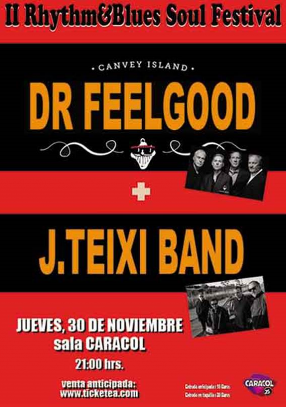 El próximo 30 de noviembre tienes una cita con el mejor Rhythm&blues y Soul que puedes escuchar, con dos bandas legendarias, Dr. Feelgood (UK) y J.Teixi Band (ES).
