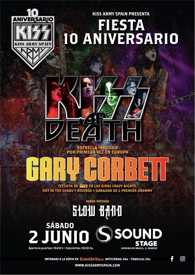 ¡¡¡¡FIESTA 10 ANIVERSARIO KISS ARMY SPAIN CON KISS OF DEATH Y GARY CORBETT EN MADRID EL PRÓXIMO 2 DE JUNIO!!!!