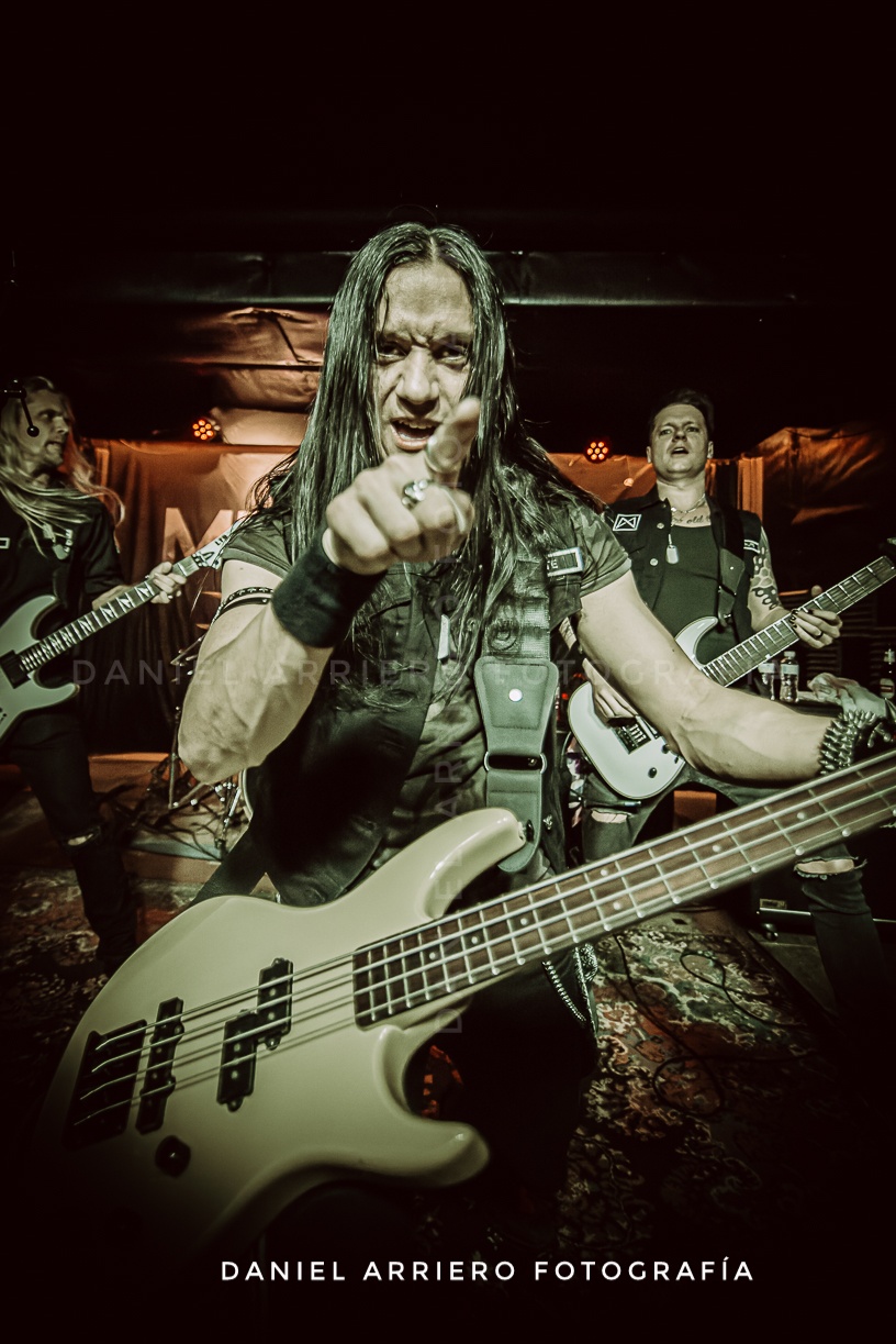 Tras la intro de rigor, el primer tema interpretado fue el que daba título a su primer trabajo “Heroes in time”. Quizá la espera entre bandas, aunque no fue excesiva y estaba prevista, enfrió el ambiente y provocó que, tanto el público como la formación, comenzara algo tímida y titubeante. Todos menos el bajista Robert Majd, que no paró en ningún momento de moverse por todo el escenario, animando al público. Qué energía la de este hombre. Incluso tuvo el detalle de dirigirse brevemente al respetable en castellano. No obstante, apenas dos temas después, los allí presentes ya estaban completamente metidos en el concierto y la banda se contagió de su entusiasmo y comenzó a disfrutar tanto o más.