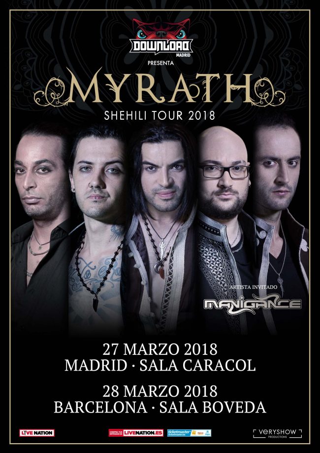 MYRATH están emocionados por anunciar su primera gira europea, ‘Shehili’, en 2018, acompañados de sus buenos amigos, la banda francesa Manigance. Los conciertos tendrán lugar el 27 de marzo en la sala Caracol de Madrid y el 28 de marzo en la sala Bóveda de Barcelona.