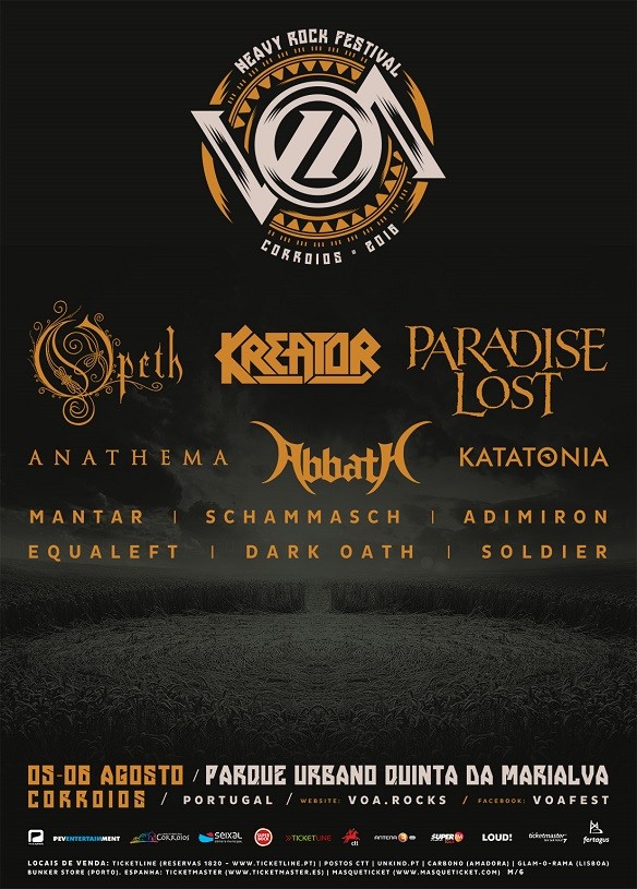 El Parque Urbano Quinta da Marialva será la sede de la gran fiesta del metal portugués. El biling reúne a OPETH, KREATOR, PARADISE LOST, ANATHEMA, ABBATH, KATATONIA, MANTAR, SCHAMMASCH, ADIMIRON, EQUALEFT, DARK OATH y SOLDIER.