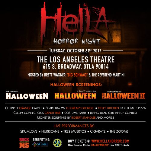 Desde que fue diagnosticada con la enfermedad degenerativa Esclerosis múltiple, ha estado realizando eventos de caridad para esta causa. En este evento se proyectaran tres películas de Halloween, dos de ellas del director y vocalista, Rob Zombie.