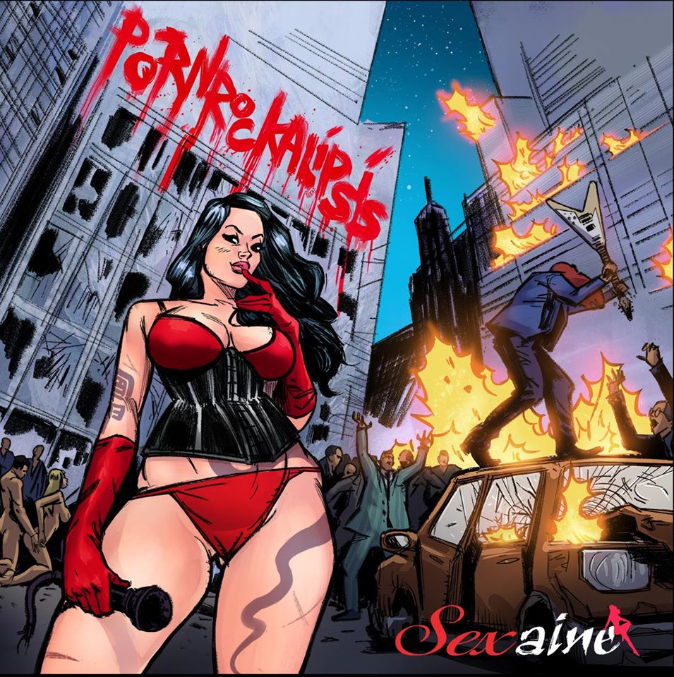 La banda gaditana Sexaine continúa ultimando los detalles para la salida de su nuevo álbum «PornRockAlipsis», del que nos adelantan la portada, obra de Aureo Lorenzo, y los títulos de los temas. Estos son los nombres de los temas que componen el disco: